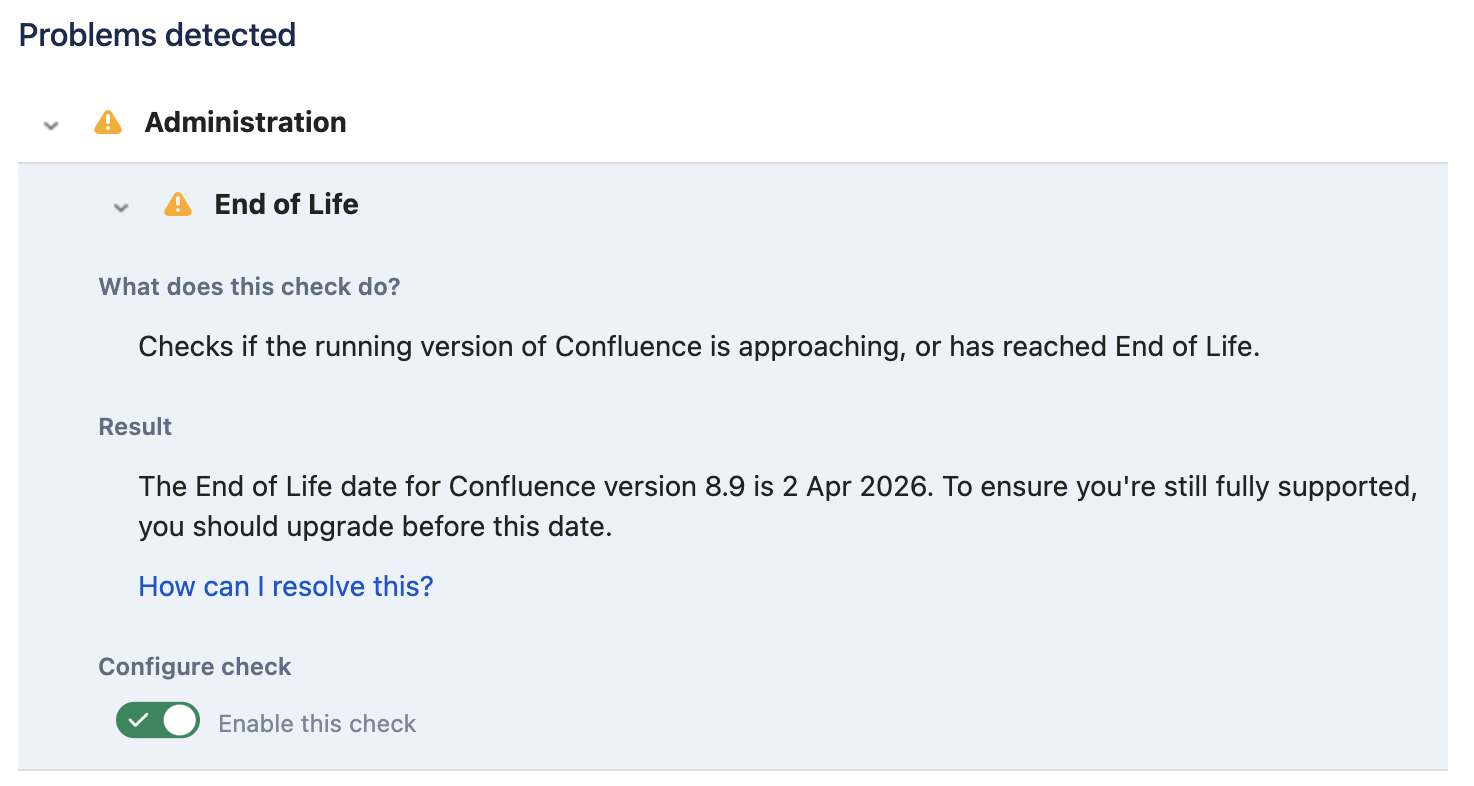 버전: Confluence 8.9 (EOS date: 2 Apr 2026)