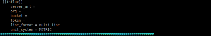 # 추가 설정 [Engine] archive_services = weewx.engine.StdArchive, user.influx.Influx restful_services = weewx.restx.StdStationRegistry, weewx.restx.StdWunderground, weewx.restx.StdPWSweather, weewx.restx.StdCWOP, weewx.restx.StdWOW, weewx.restx.StdAWEKAS, user.influx.Influx # Engine 탭의 archive_services와 restful_services에 user.influx.Influx 추가(빠져있는 경우 추가)
