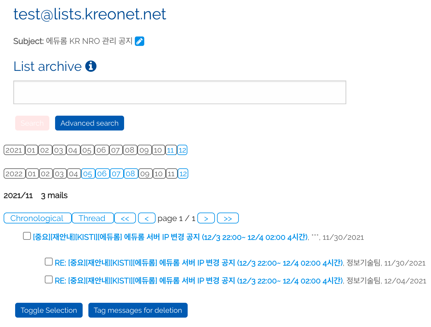 도메인명 | lists.kreonet.net |