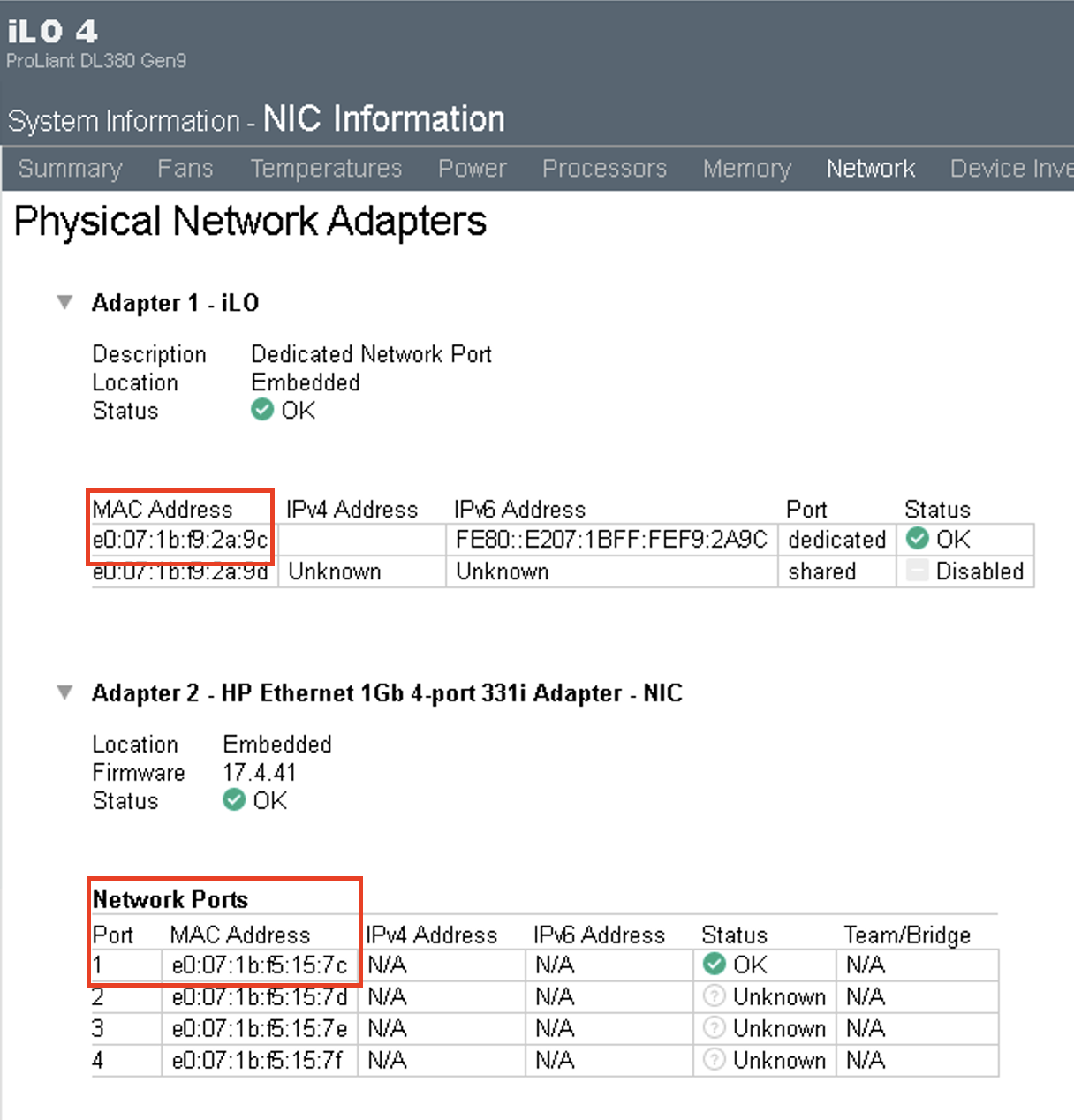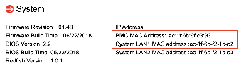BMC 및 포트1 맥주소 확인 방법 (그림을 클릭하면 확대됨)